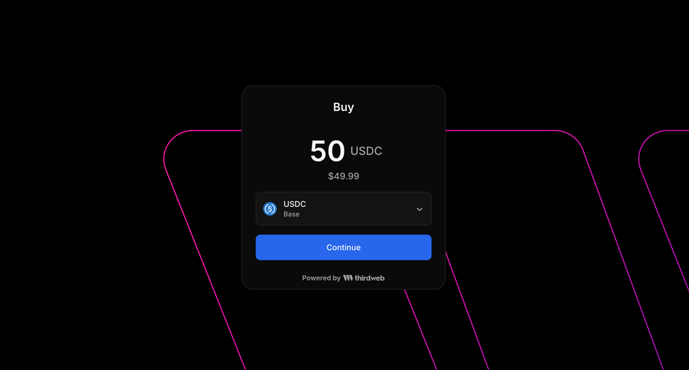 The whole experience runs on thirdweb's Universal Bridge — the infrastructure used by top apps to let users buy, swap, bridge, or send tokens directly inside their product.