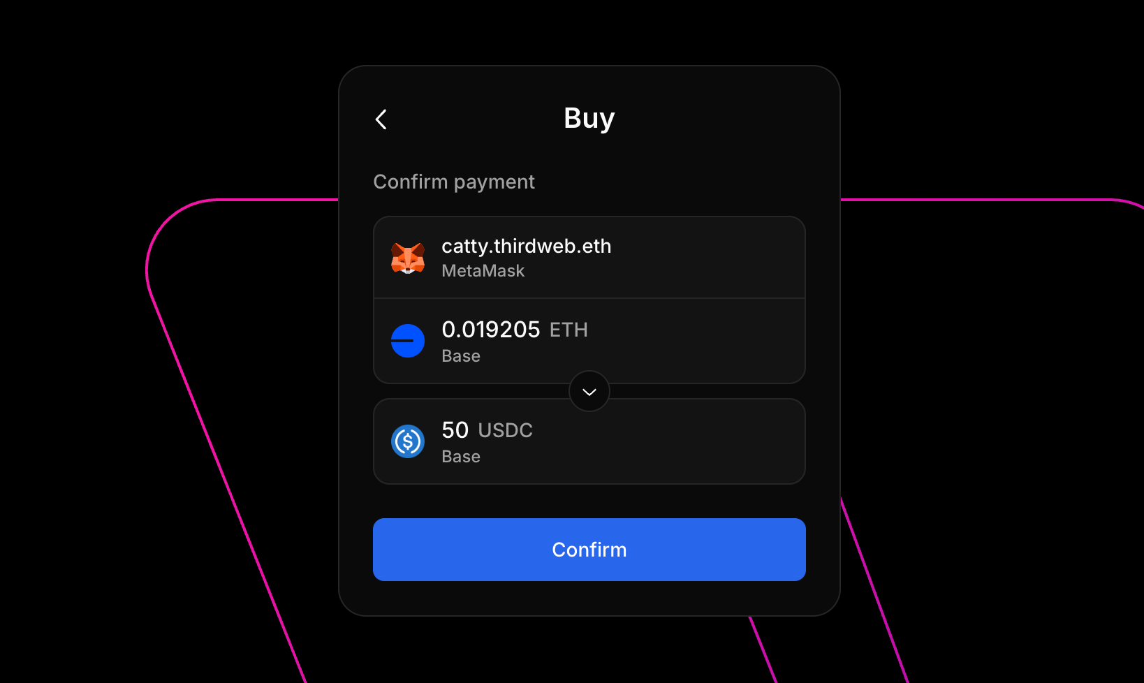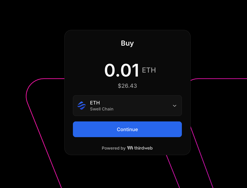 The whole experience runs on thirdweb's Universal Bridge — the infrastructure used by top apps to let users buy, swap, bridge, or send tokens directly inside their product.