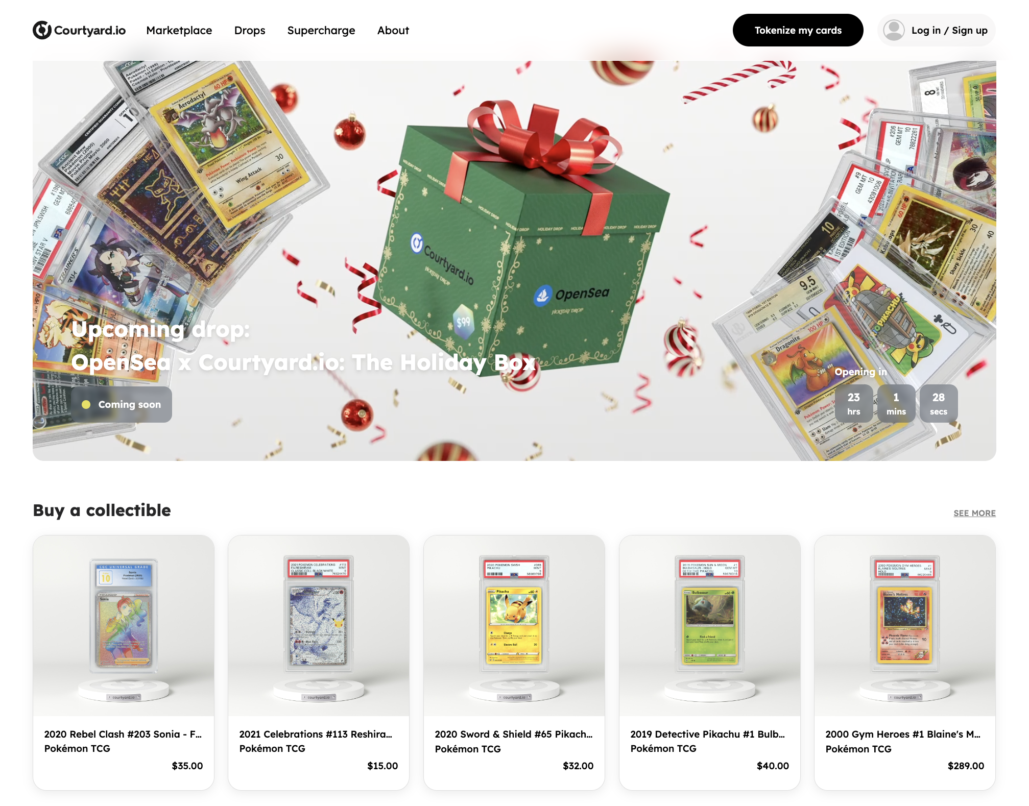 Courtyard supports all kinds of collectible cards — from Pokémon cards, to all varieties of sports cards, to VeeFriends cards. The team also regularly holds curated mystery pack Drops to provide a fun way for enthusiasts & new collectors alike to participate.