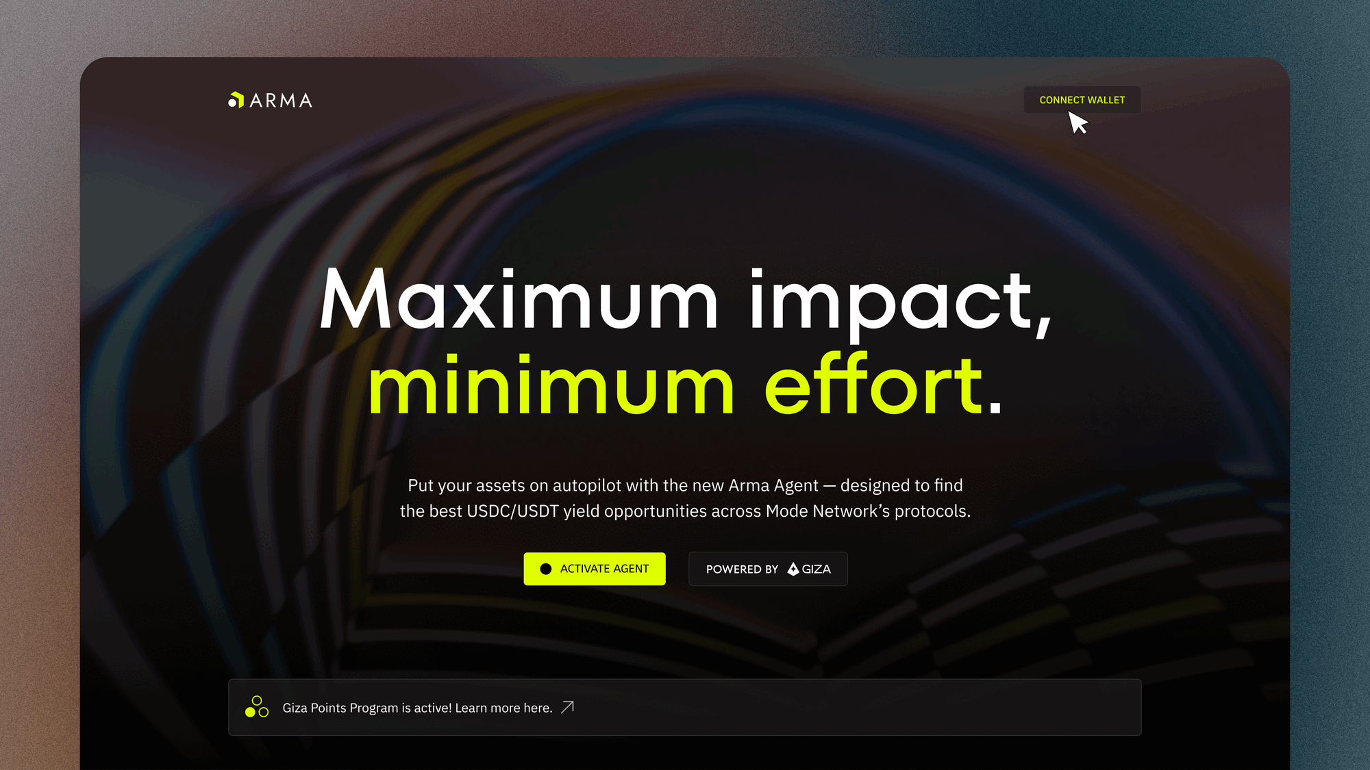 Giza is revolutionizing the DeFi landscape with ARMA, an intelligent agent that maximizes stablecoin returns across Mode Network's leading lending protocols. By leveraging thirdweb's cutting-edge technology, Giza has created a seamless, secure, and automated yield optimization experience for users.