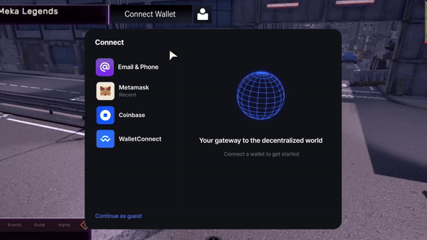 Meka Legends has overcome these obstacles by implementing thirdweb's Account Abstraction wallets. By implementing smart wallets, players can login using familiar web2 authentication methods, such as email or social media accounts.