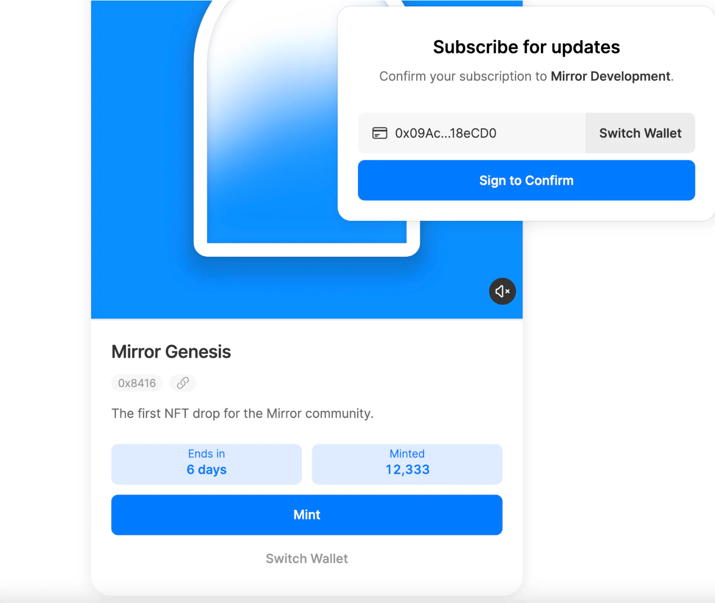 thirdweb’s signature-based minting allows Mirror to offer NFTs exclusively to subscribers