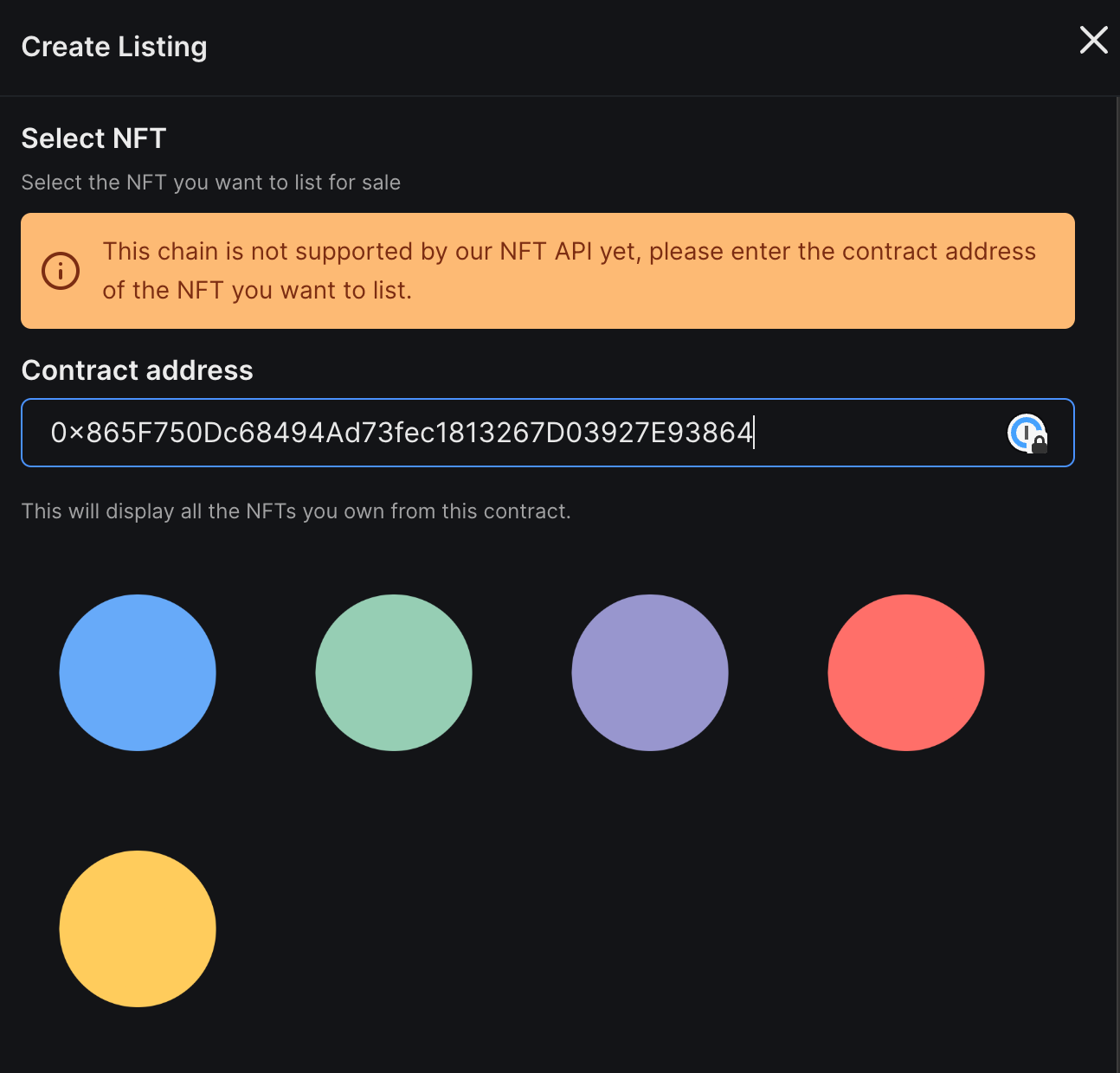 When creating a new listing on dashboard on a marketplace, we use to support just some chains in which we had access to an NFT API.