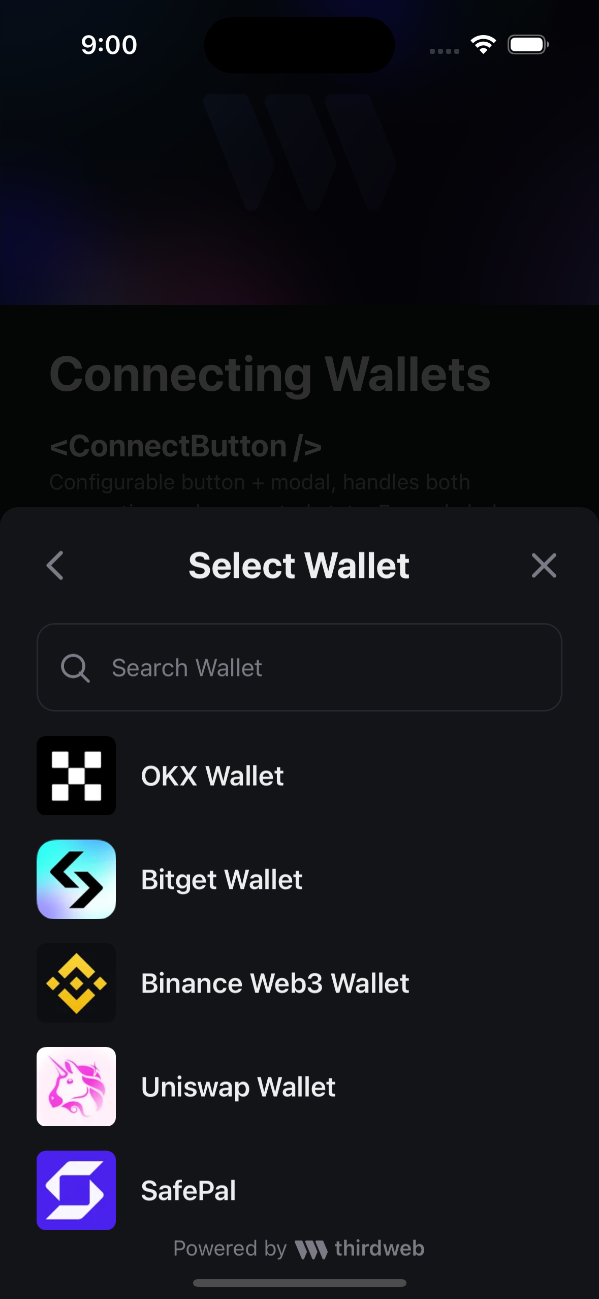 Connect to 300+ mobile wallets from React Native connect UI