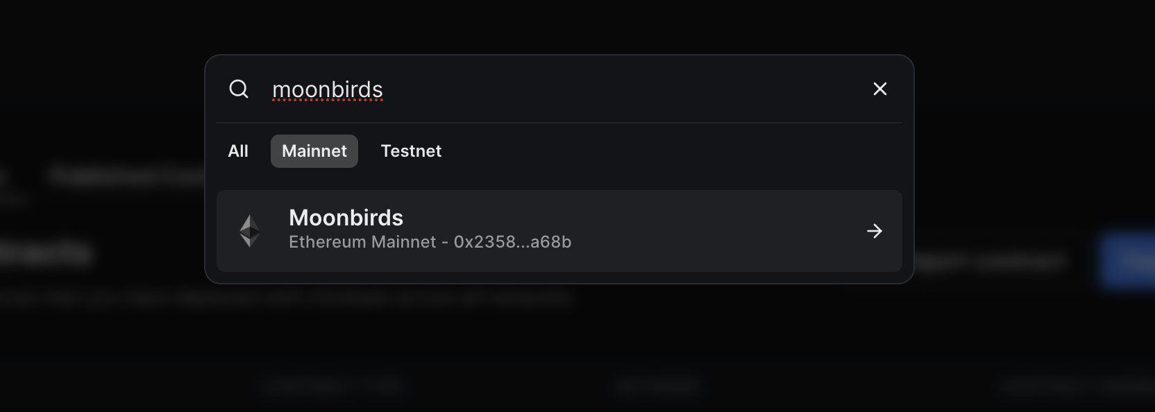 Easily find any imported or thirdweb deployed contract by name.