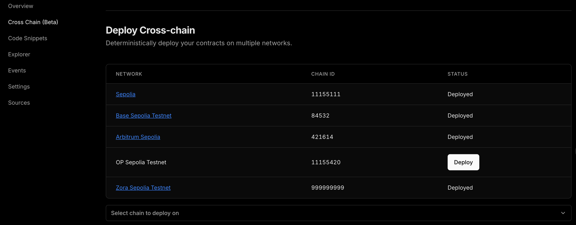 Use the dropdown to select the chain you wish to deploy on. Then click on Deploy button.