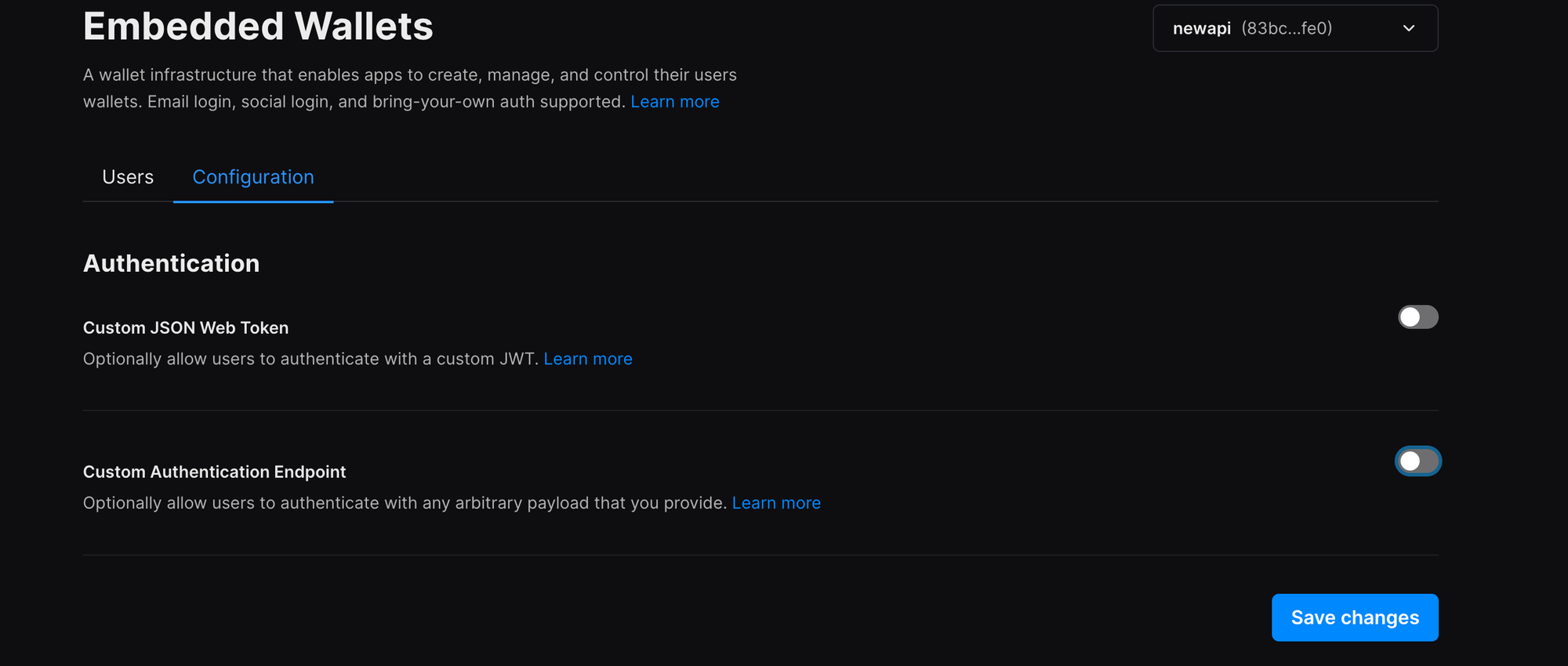 Working with custom auth is easy, all you need to do is specify the following parameters in the configuration tab of the wallet dashboard