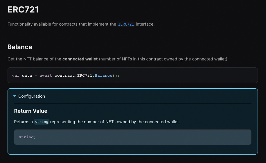 Each method now includes a Configuration and Return Value section for you to know ahead of time what information you can expect to get when using the method.