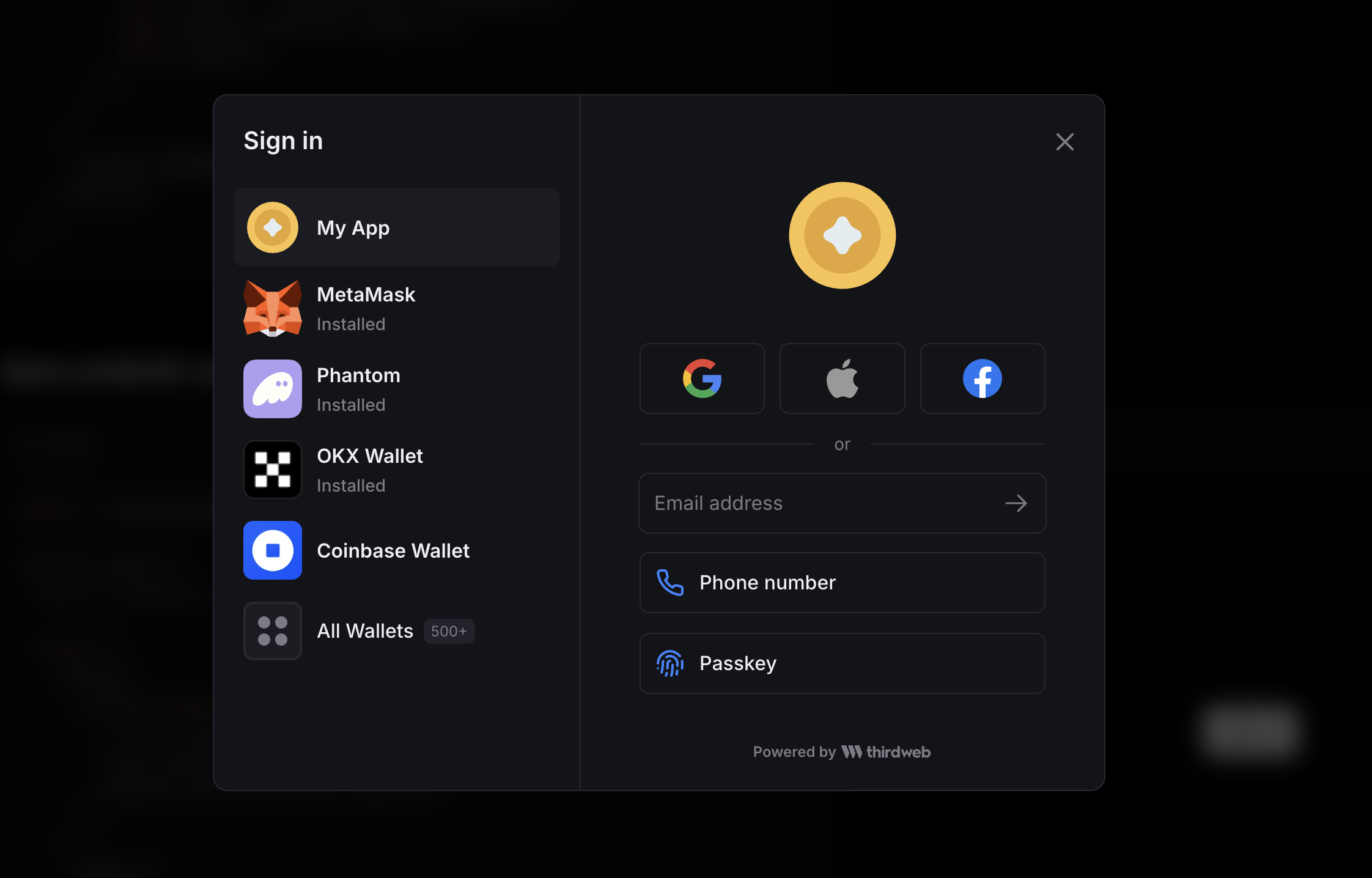 name: "My App", // name for the wallet list