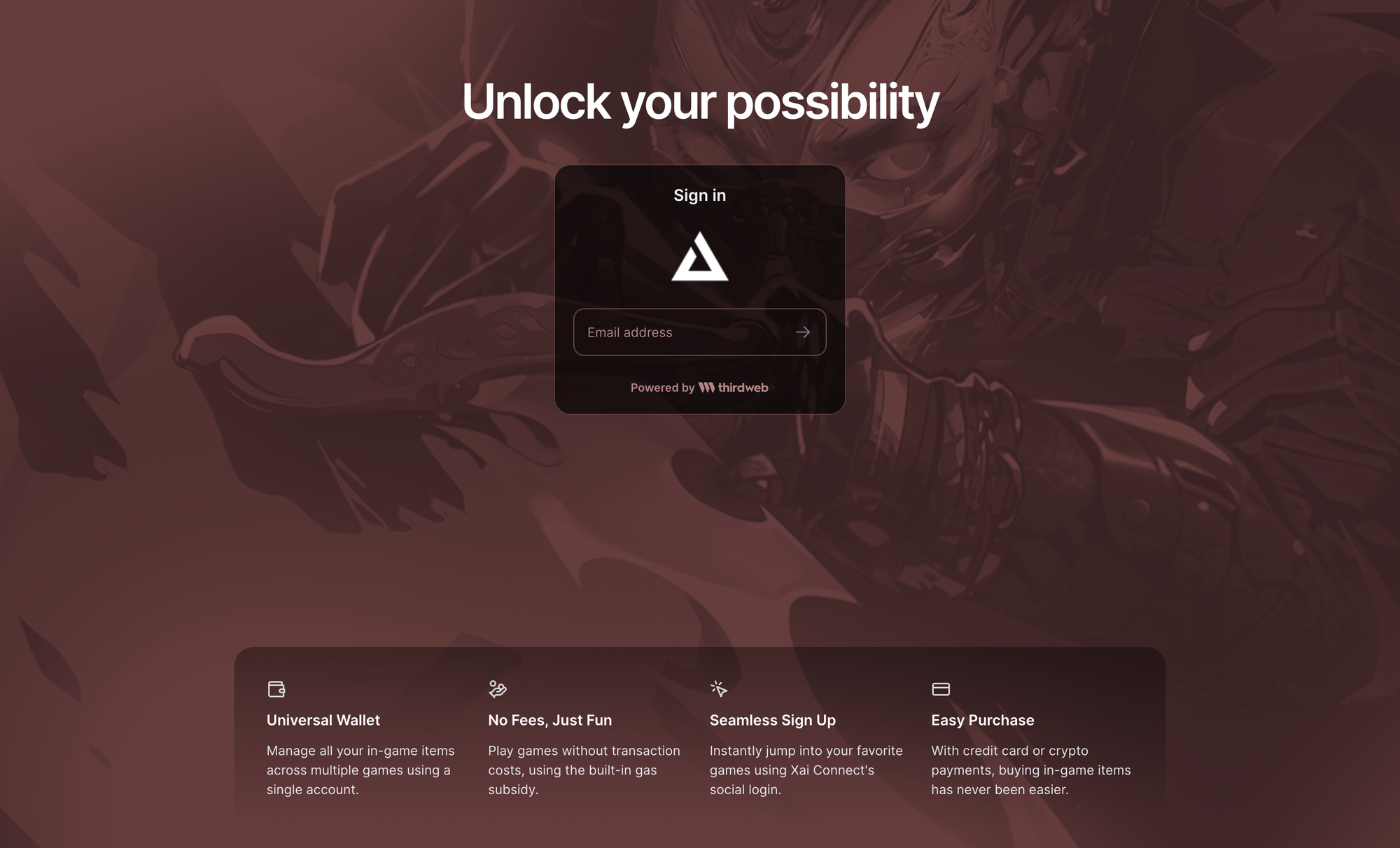 Players also gained the ability to sell assets earned across these games logging into Rarible with their Xai account. Their Xai account is now their go-to identity across web3, allowing them to log into any application through thirdweb Connect. Soon you'll also be able to log in with Wallet Connect or any wagmi- and ethers-based login provider.