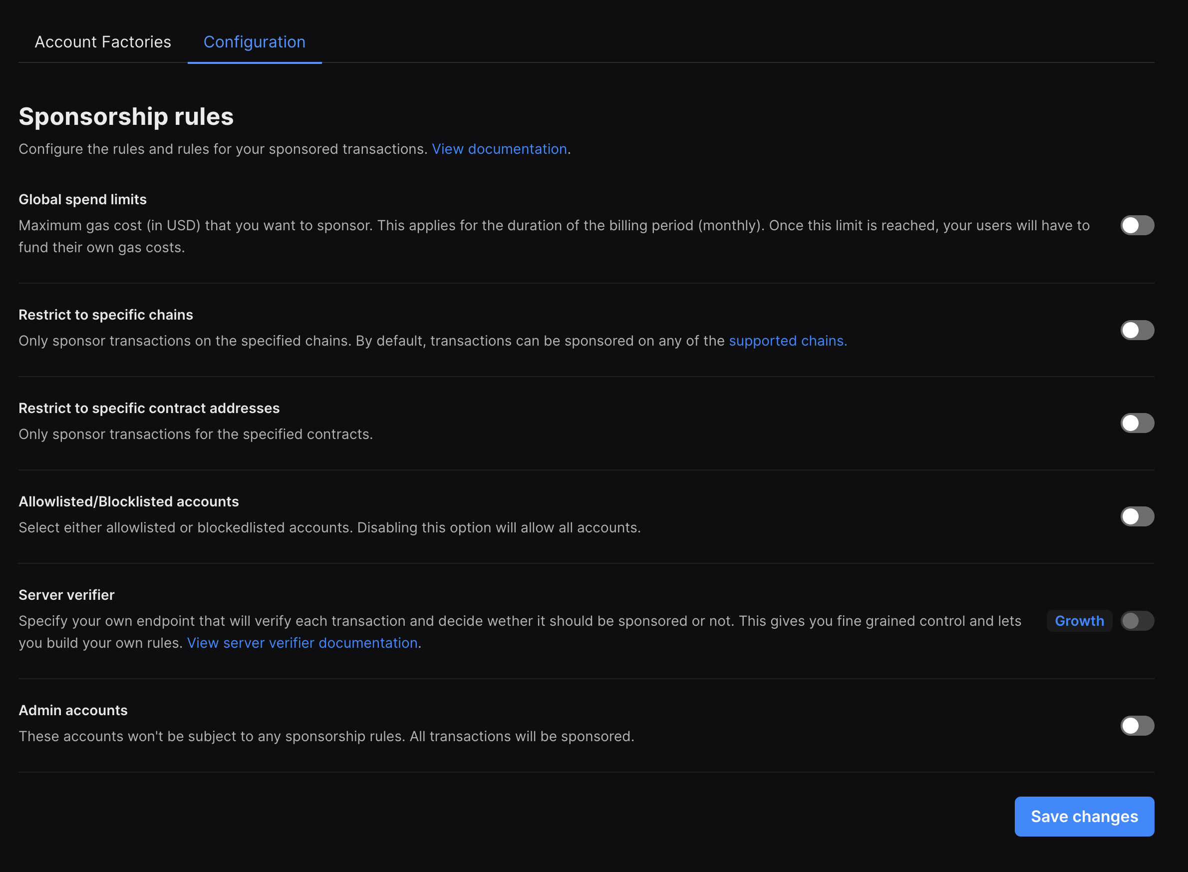 Our sponsorship rules feature lets you set controls over which transactions your paymaster should sponsor, letting you prevent bad actors from running up your paymaster usage. We recently shipped two new rules - account lists and admin accounts.