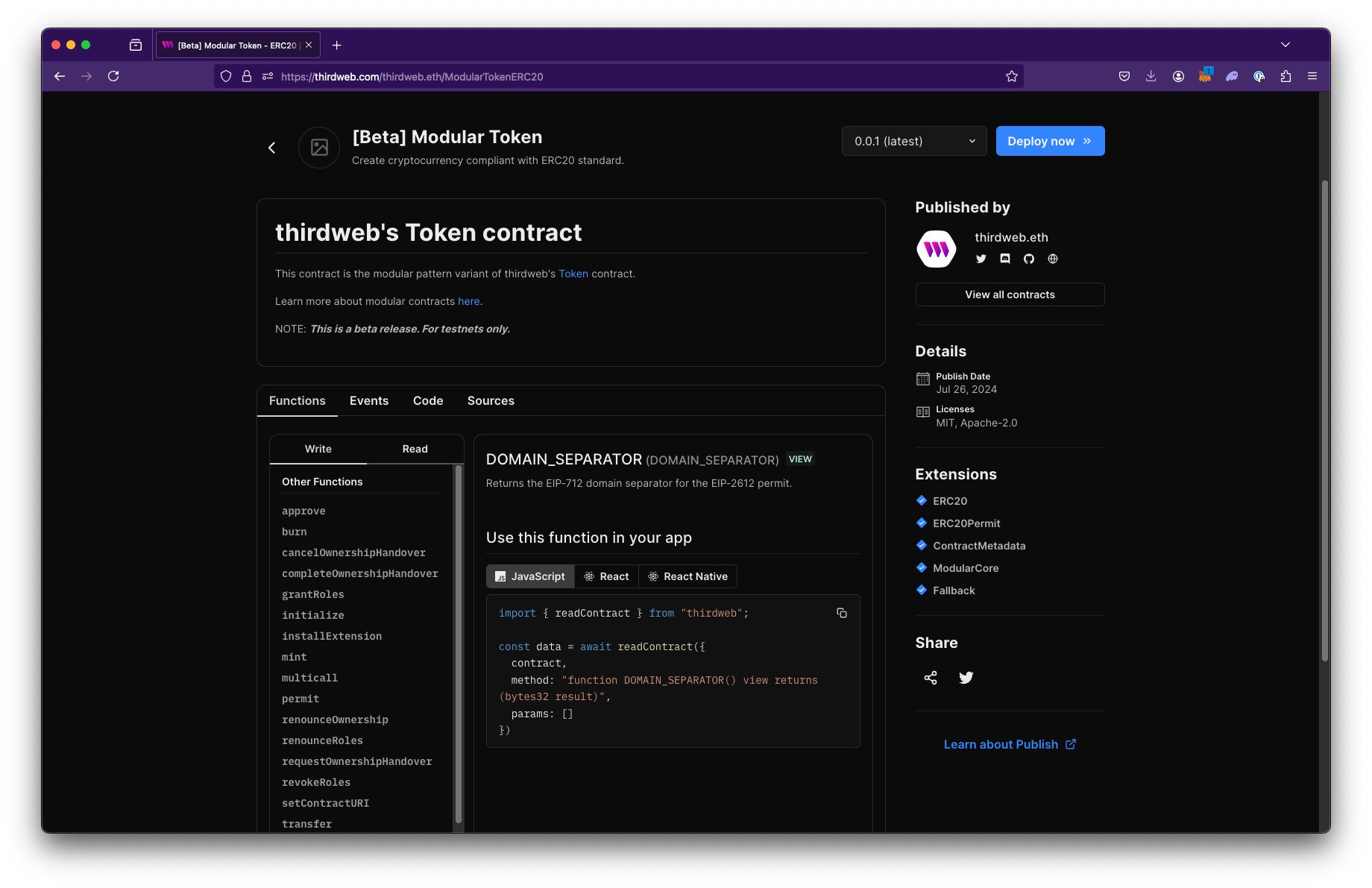 Modular contracts are how we will be offering thirdweb contracts to customers for the indefinite future. All legacy or previous existing pre-built contracts will be replaced with the new modular contracts in the coming year — and soon we are making it easier for contract developers and partners to contribute to the entire ecosystem.
