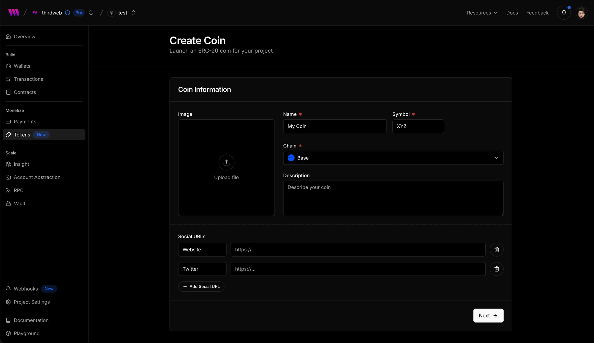 You can try out the new ERC20 token creation flow in thirdweb Dashboard > Your Team > Your Project > Tokens > Create Coin