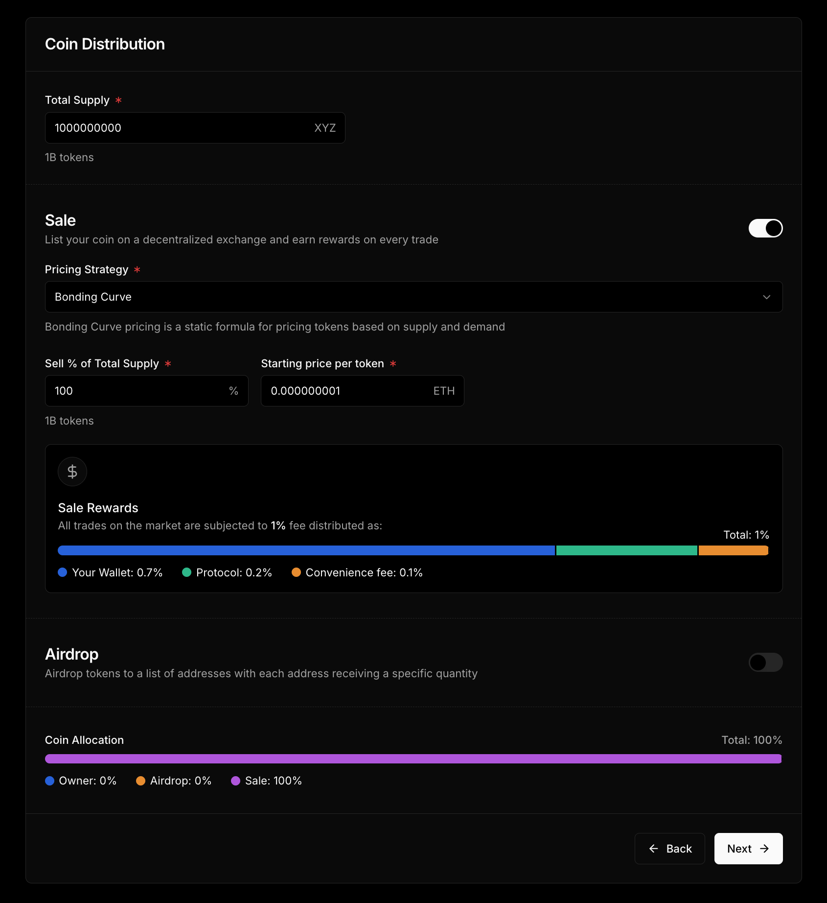 Reserve a portion of tokens for airdrops to a pre-selected list of recipients. Perfect for rewarding your early supporters
