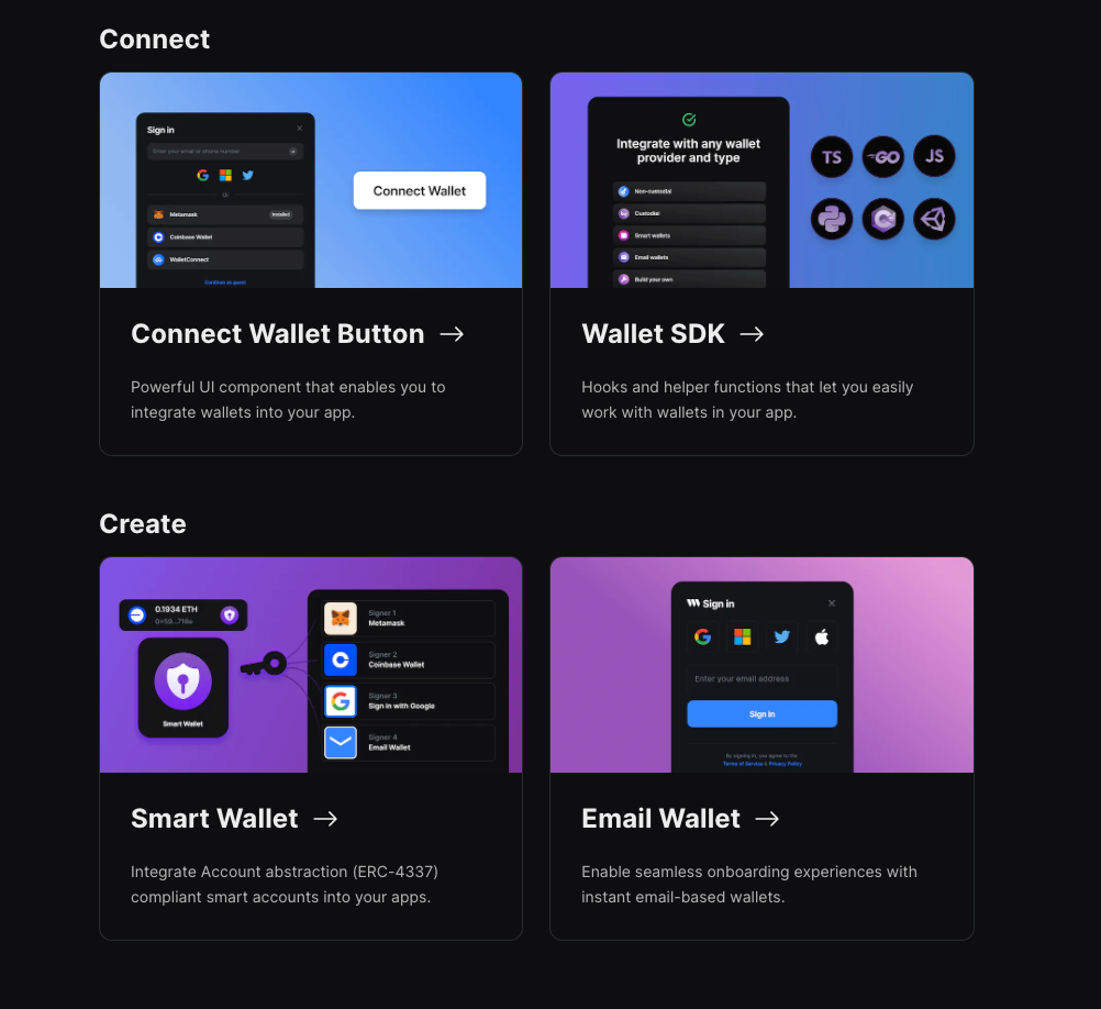 We've revamped the wallets tab on the dashboard to showcase the full extent of wallet connection and creation capabilities of the thirdweb platform.