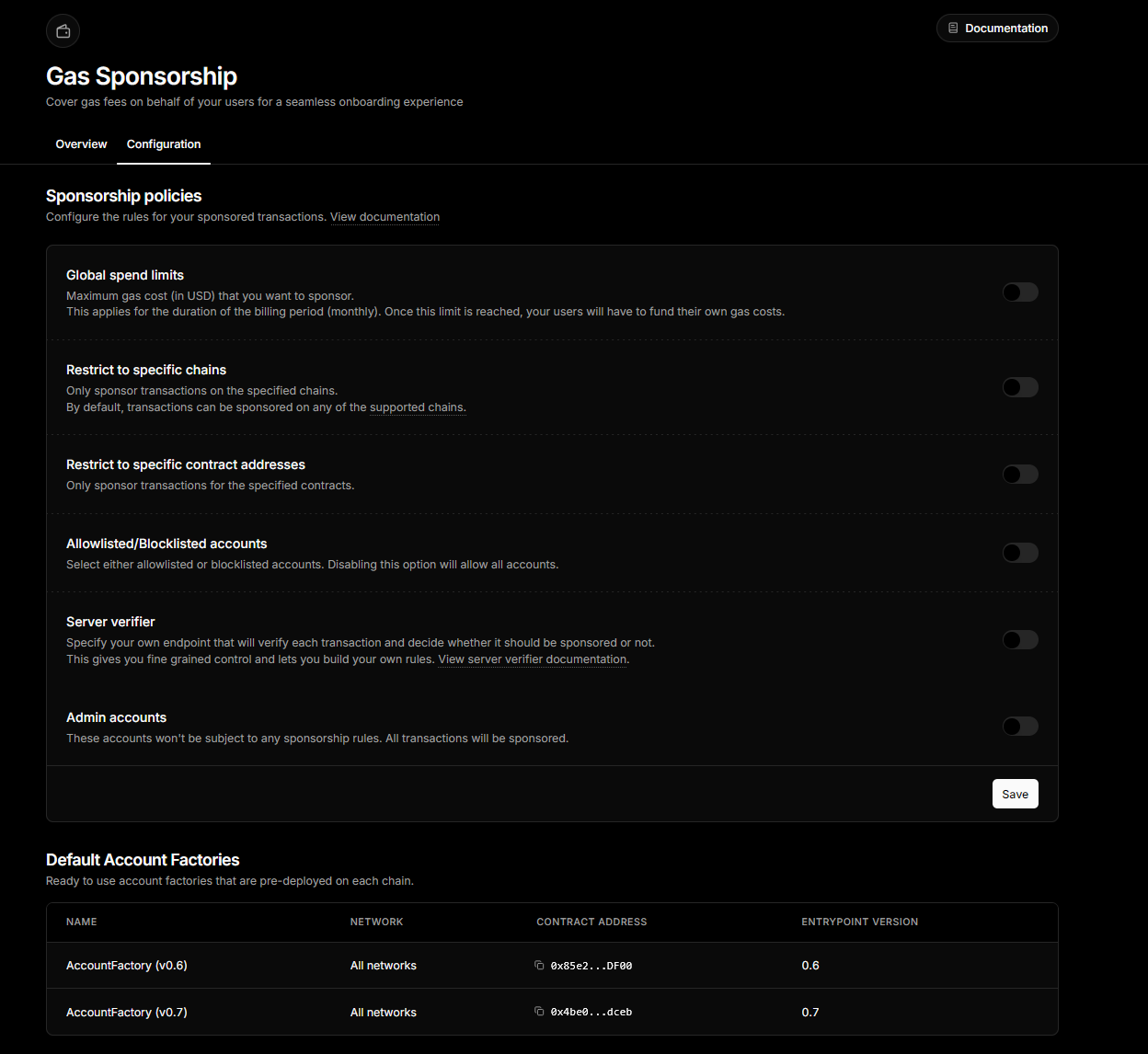 This section shows you your gas sponsorship usage regardless of the interface (or EIP/execution mode) used to sponsor said gas. You can track your usage here easily.