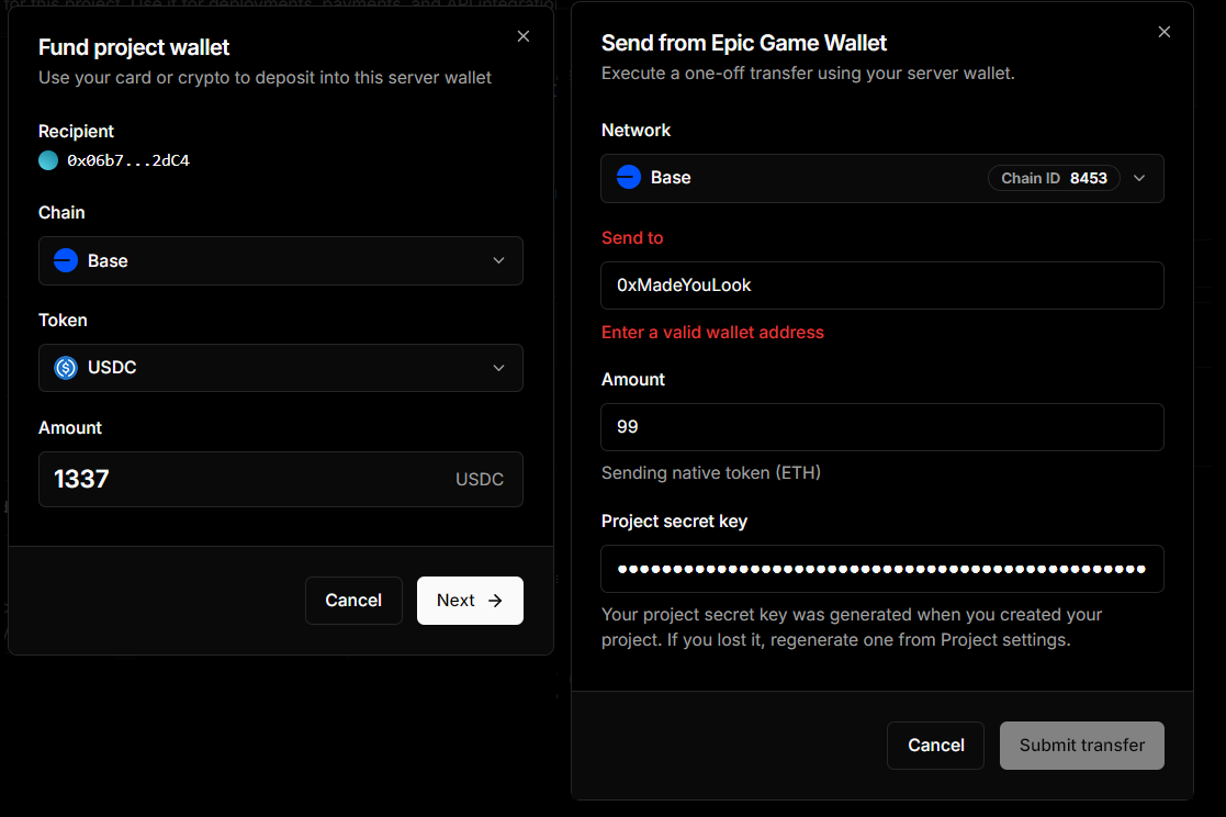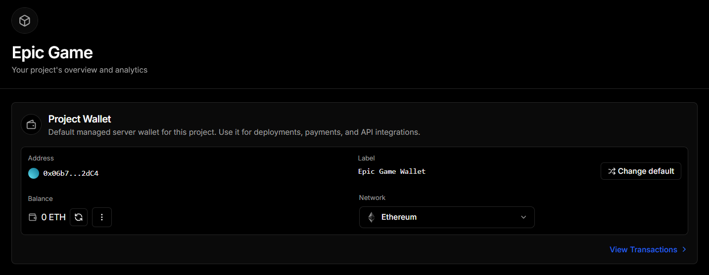 We’ve introduced Project Wallets as a first-class part of the dashboard so every project comes with a managed server wallet you can see, fund, and control right from the overview screen.
