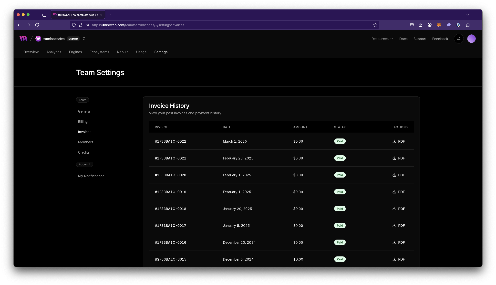 With the latest dashboard update, users can now view their invoices directly in thirdweb for easy management.