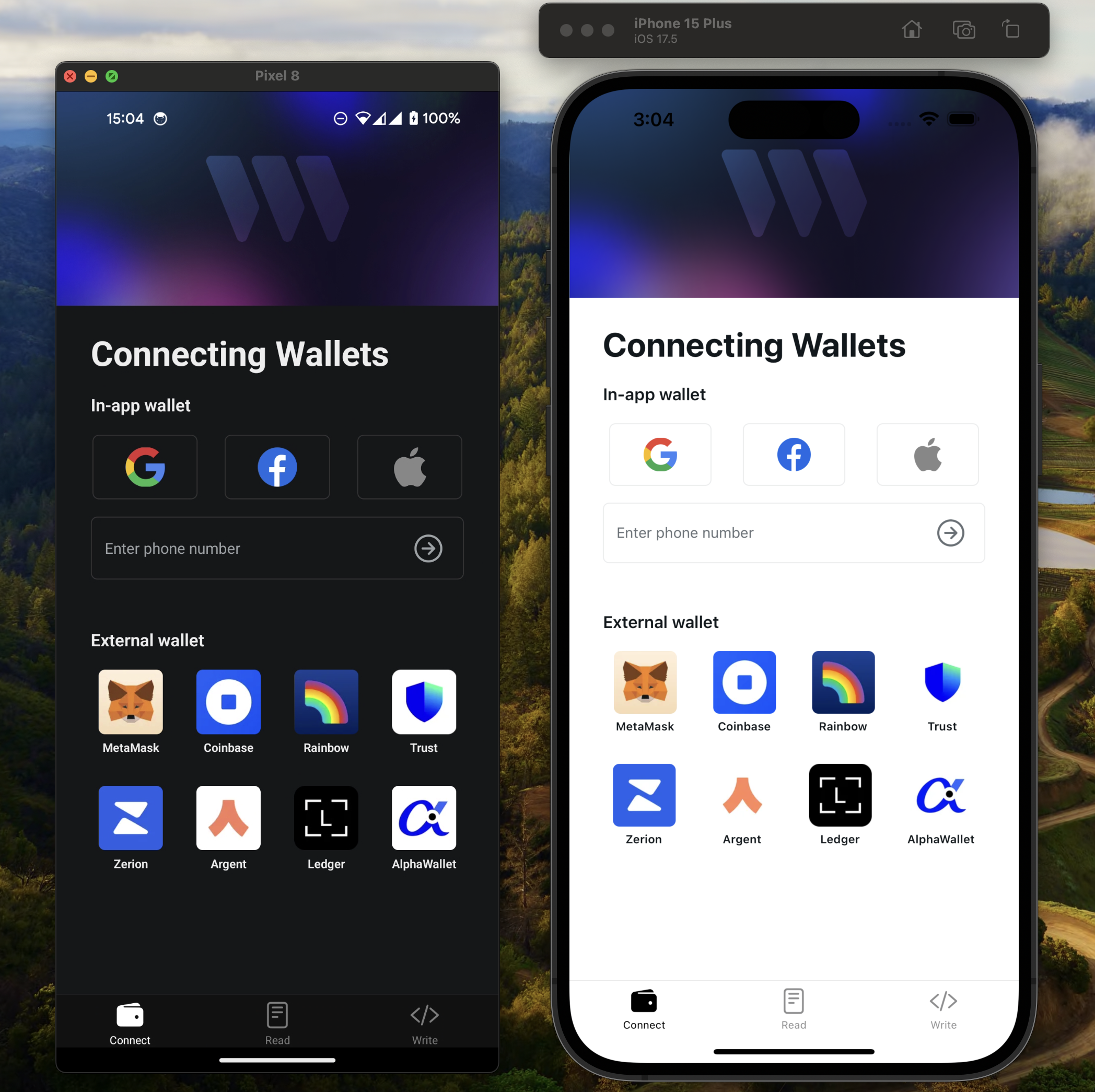 Connect hundreds of mobile wallets to your native apps.