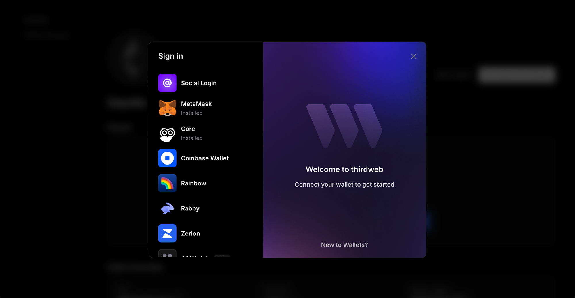 Choose which wallet you would like to sign-in with.