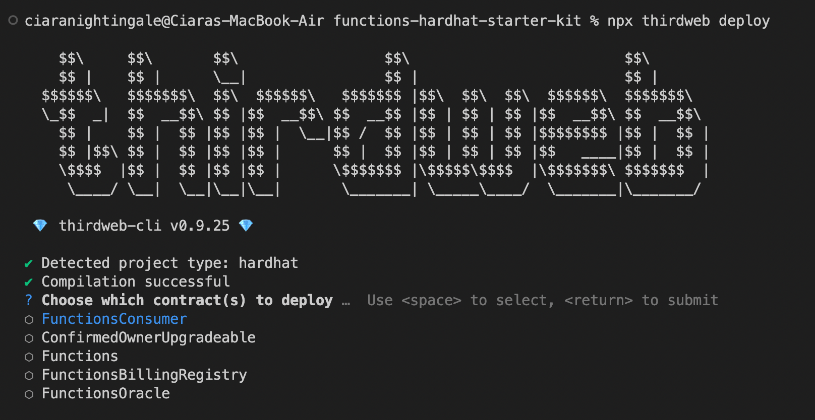 This will build the contract and prompt you to select the contract FunctionsConsumer.