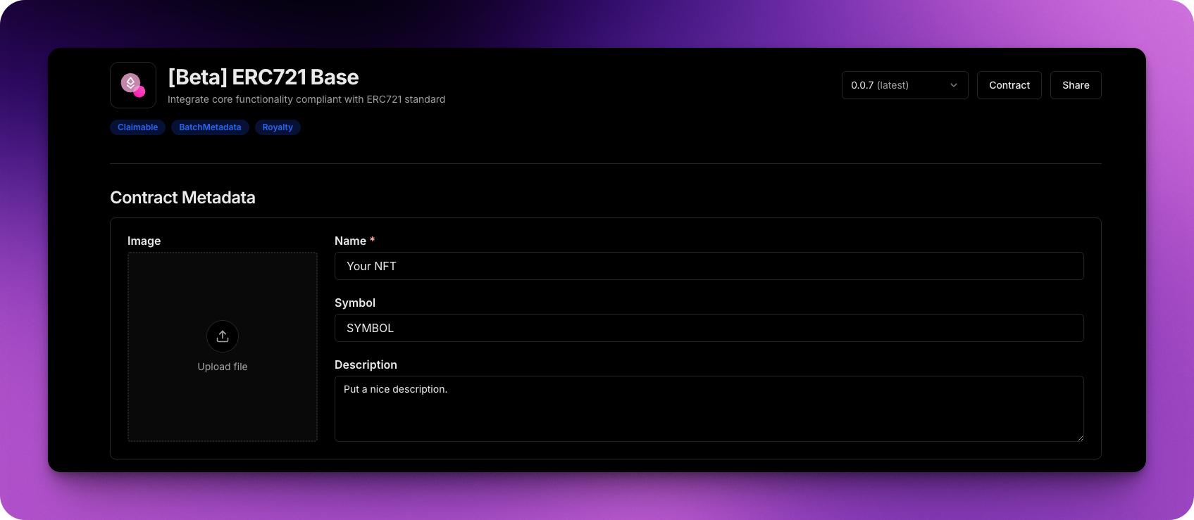 - Deploy your own core contract using the Thirdweb dashboard.