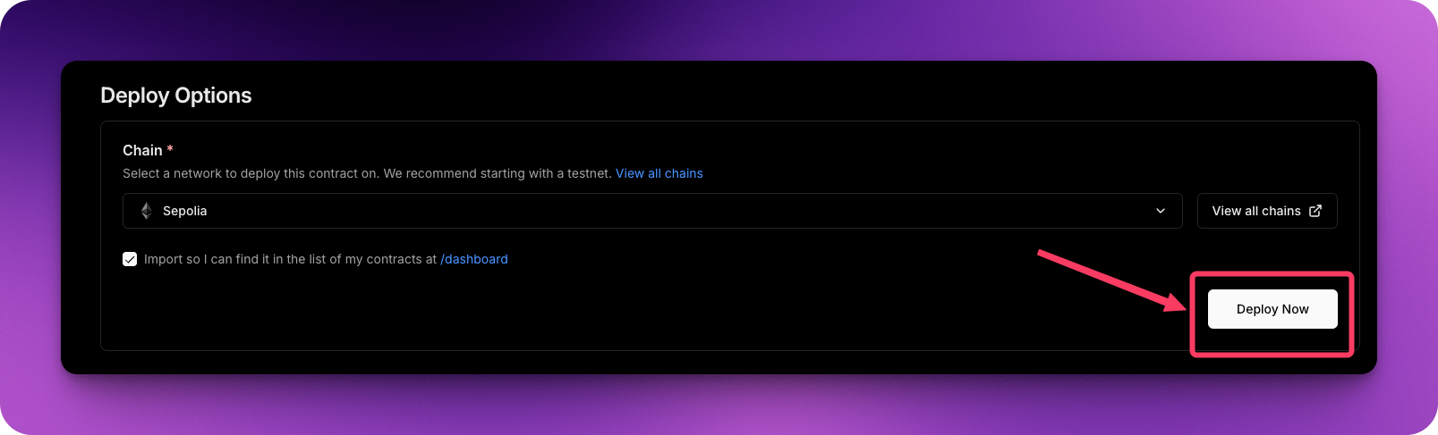 - Choose your network and click "Deploy Now"