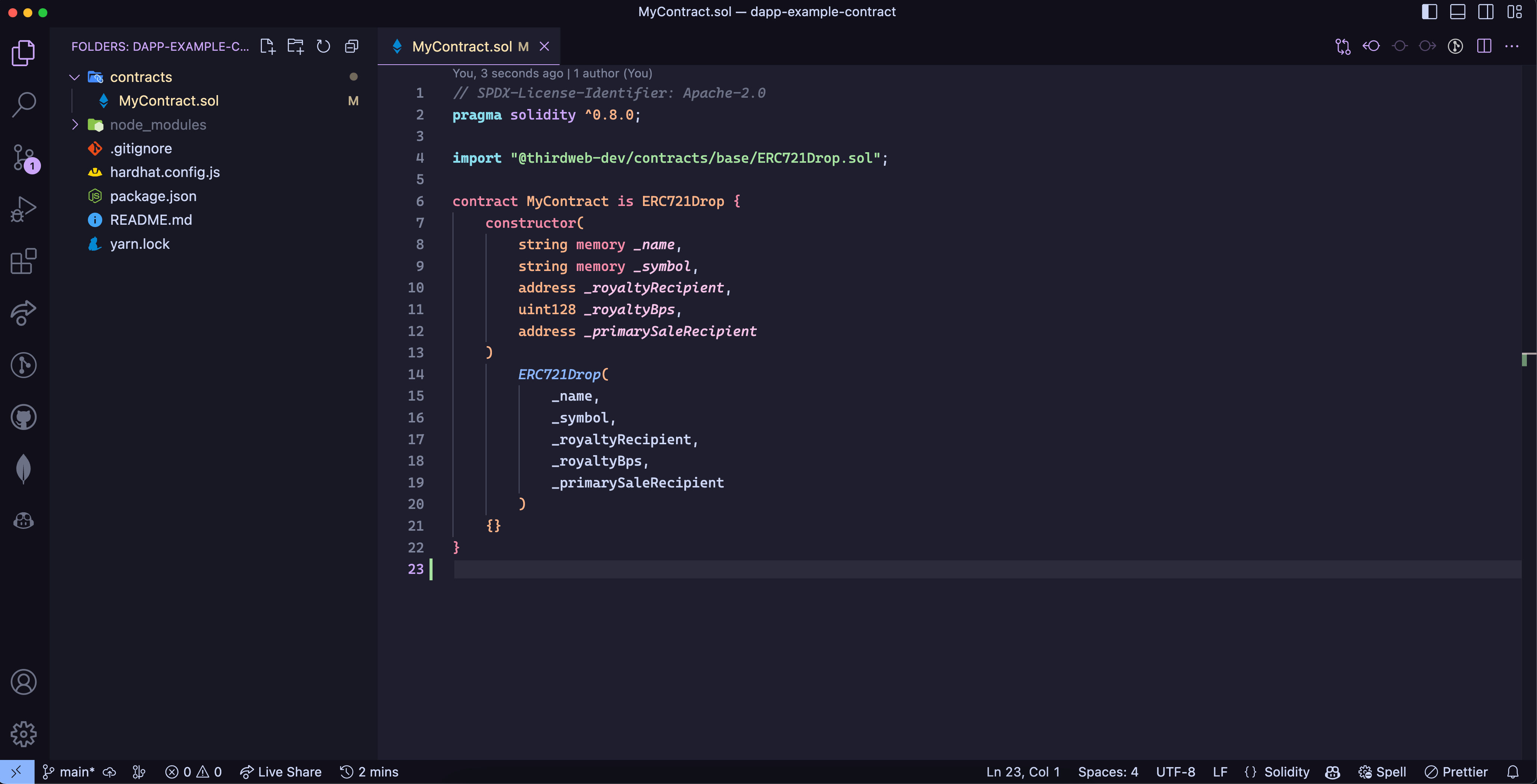 You can make any changes to the functions in this contract or extend the functions as you like, with our Solidity SDK. But for the sake of the simplicity of the guide, I am going to deploy the default NFT drop contract.