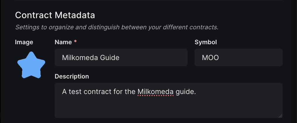 2. Configure your contract metadata: Name, Symbol, Description, and Image