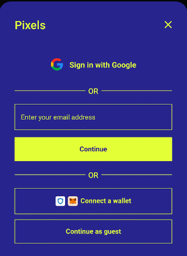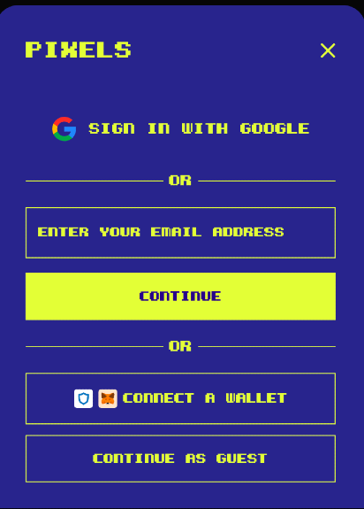 <ConnectWallet modalTitleIconUrl="" modalTitle="Pixels" />