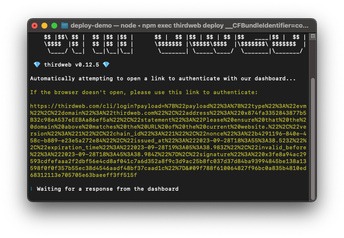 1. Navigate to the root of your smart contract repository using the Command Line Interface (CLI). Then, run the command npx thirdweb deploy.