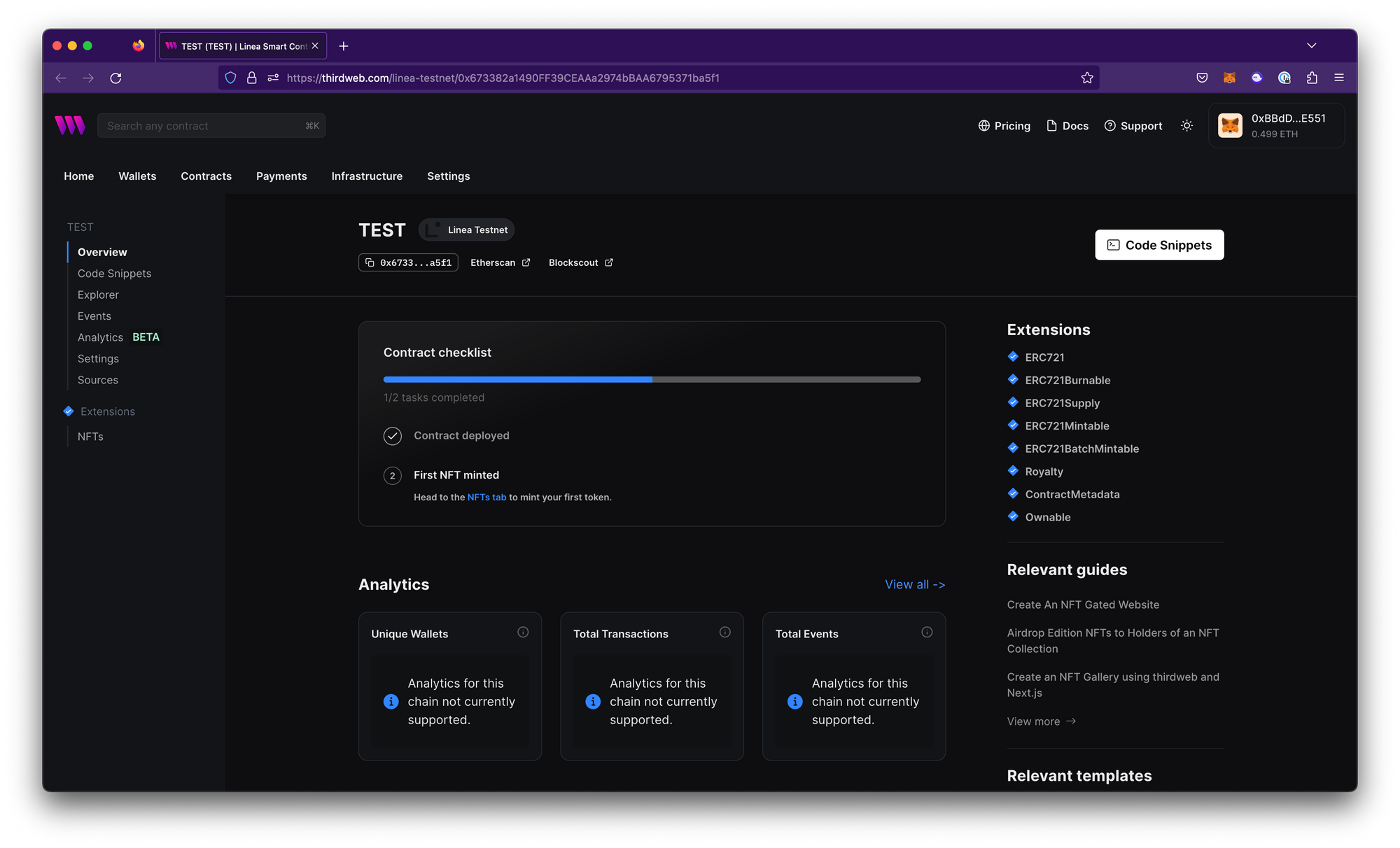 5. Once deployed, you can manage your contract through the thirdweb dashboard.