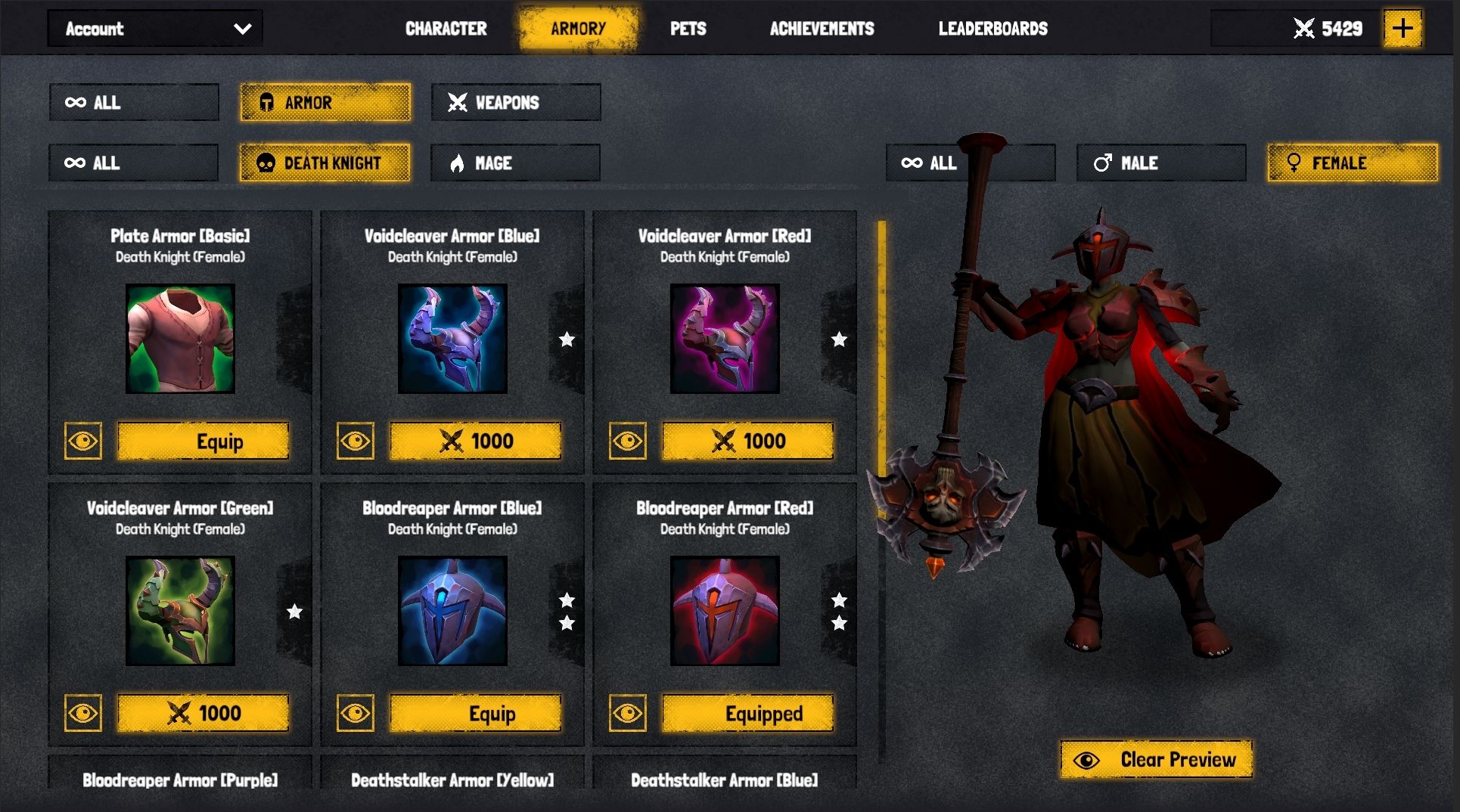 The Armory screen enables players to purchase armor and weapon skins using their Battle Tokens. Let’s walk through how this works.