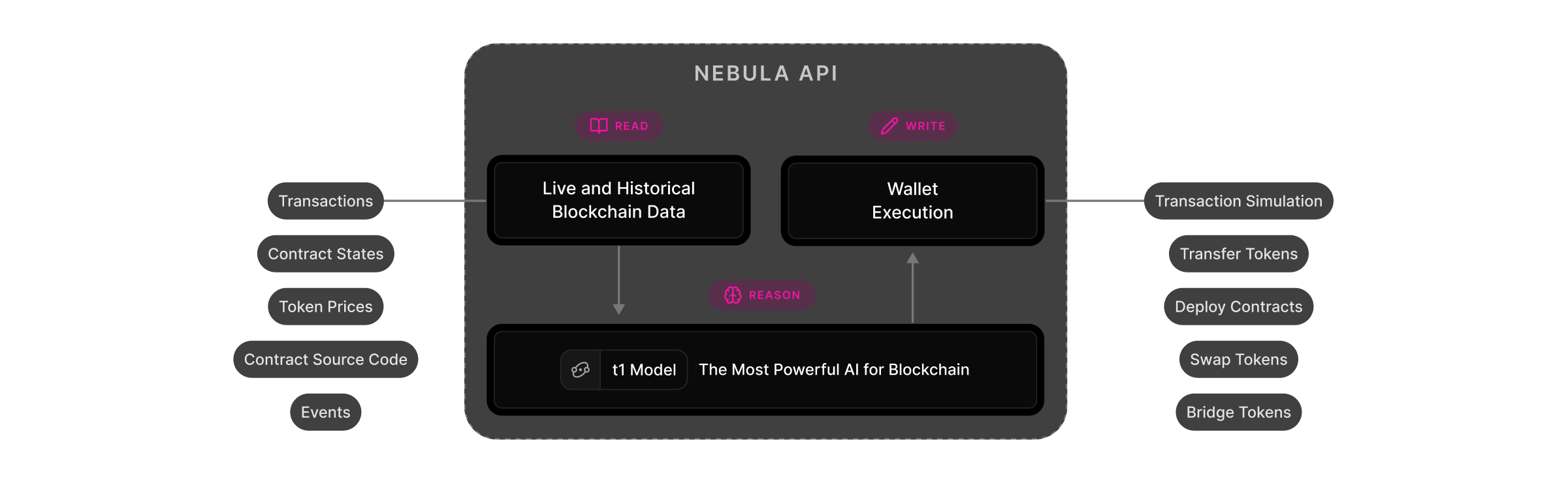 Nebula is the most powerful AI model for interacting with blockchains, with access to live and historical onchain data with the ability to execute transactions autonomously or with supervision in natural language. It provides a powerful API to build agents and crypto powered AI applications.