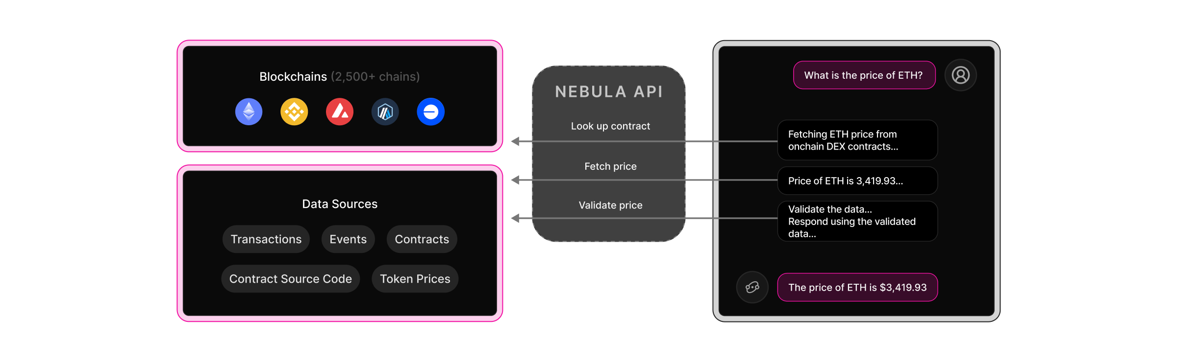 We built thirdweb Nebula to understand and use thirdweb's underlying tooling and infrastructure to; fetch data reliably, execute transactions under supervision or autonomously, and understand structures of blockchain data.
