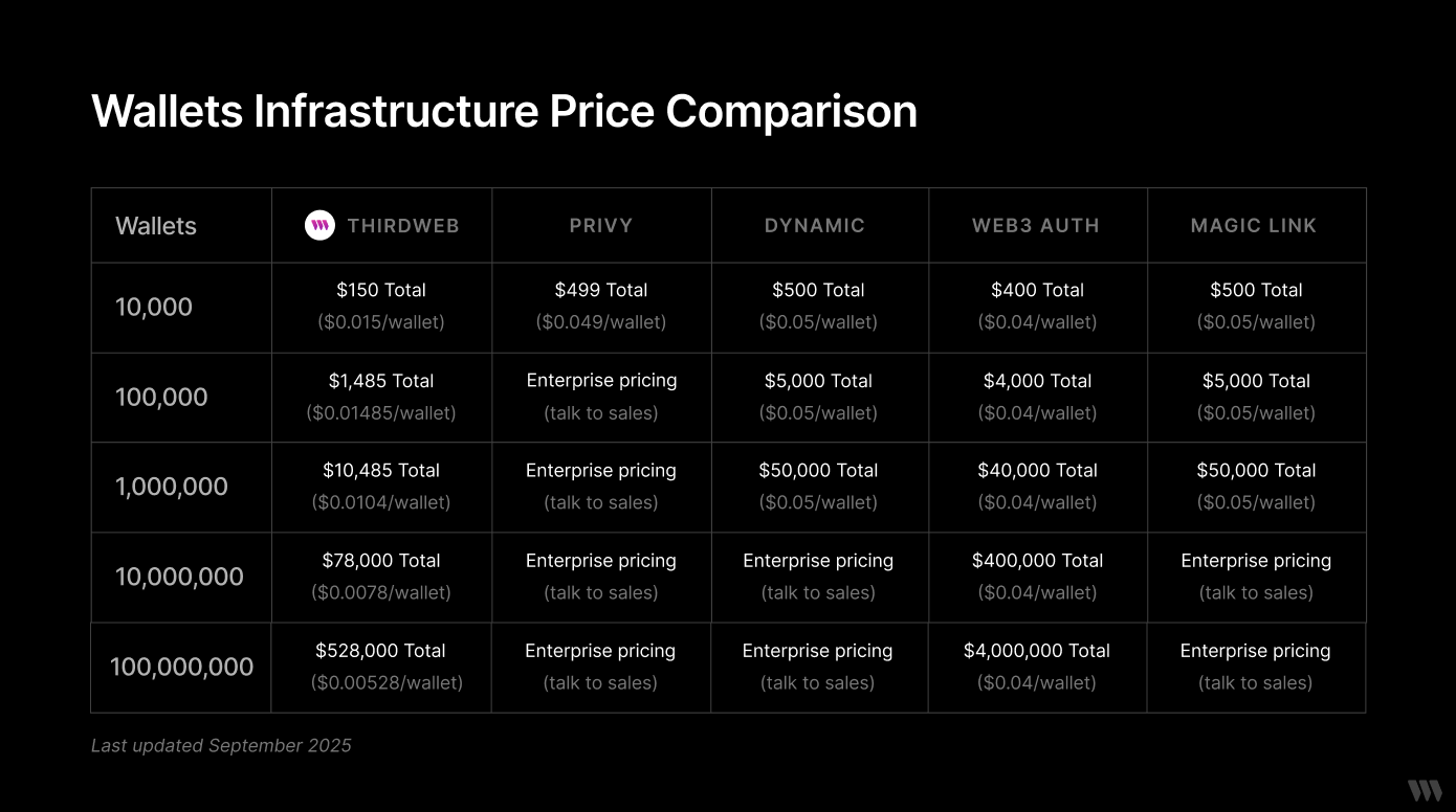 A: thirdweb offers wallets 3-4x less than other industry providers.