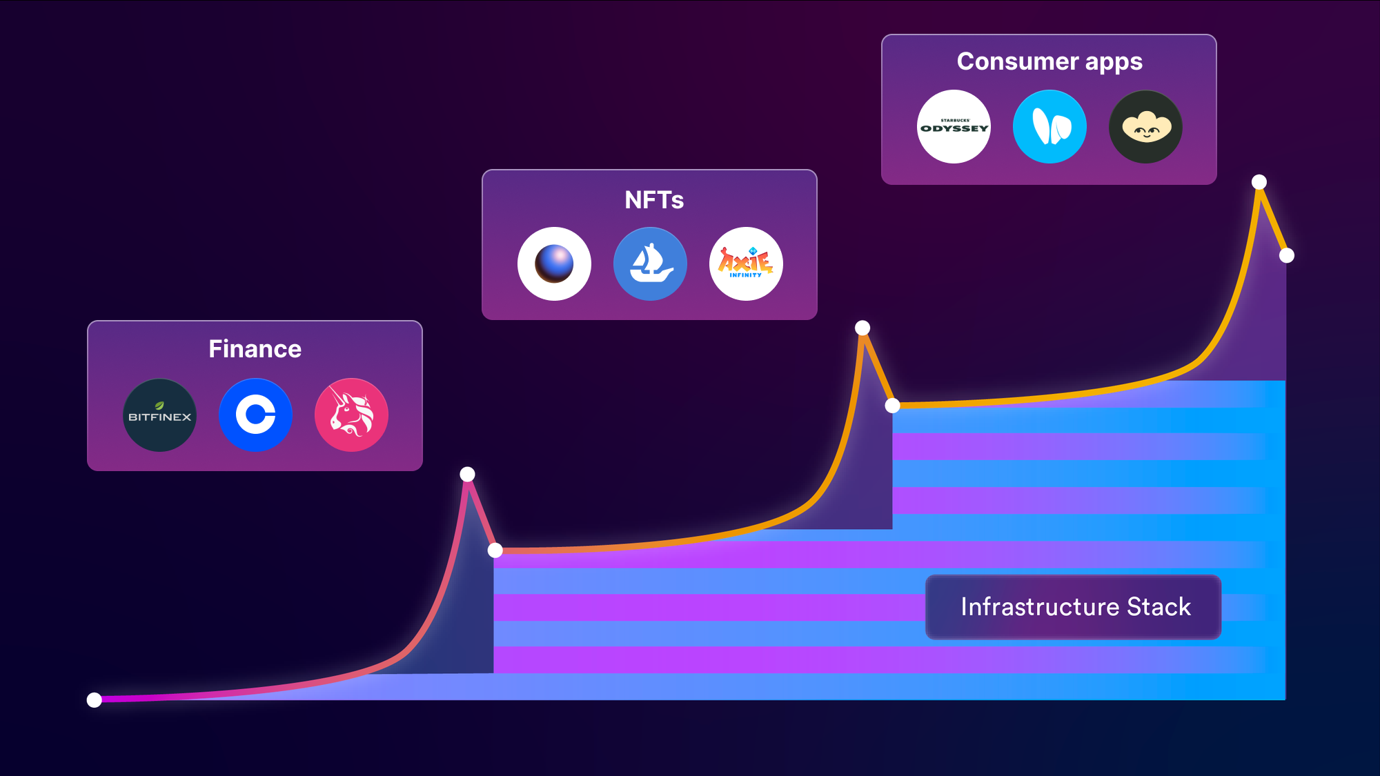 - Developer complexity: To build a web3 app, developers need to piece together 10+ different tools that don't natively talk to each other — creating a messy, fragmented DX that stifles innovation.